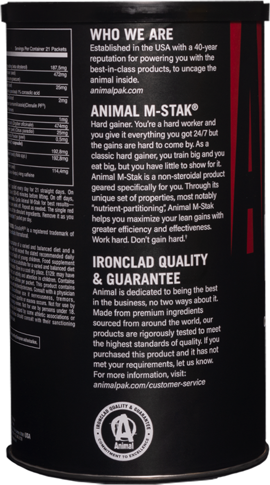 Animal M-Stak is built for the hardgainers who show up and grind every day. This non-hormonal muscle-building stack combines natural plant extracts, essential amino acids like leucine (the building blocks of protein), and adaptogens. Protein supports muscle growth and helps maintain muscle mass. Halal-certified for athletes who want serious performance without compromise.