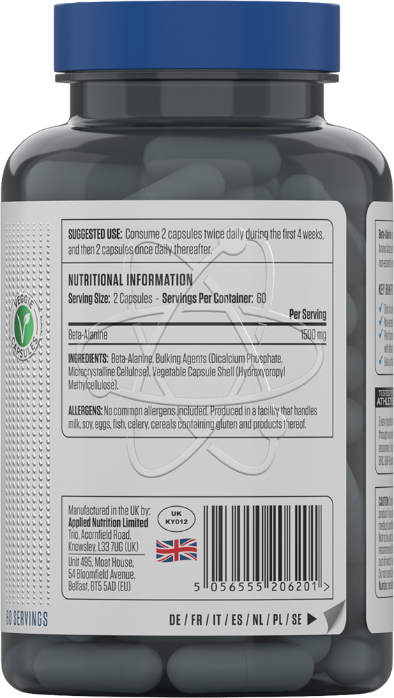 Applied Nutrition Beta-Alanine 1500 is a premium beta-alanine supplement. Ingredients have been evaluated, analysed and tested for athletes to ensure maximum support.