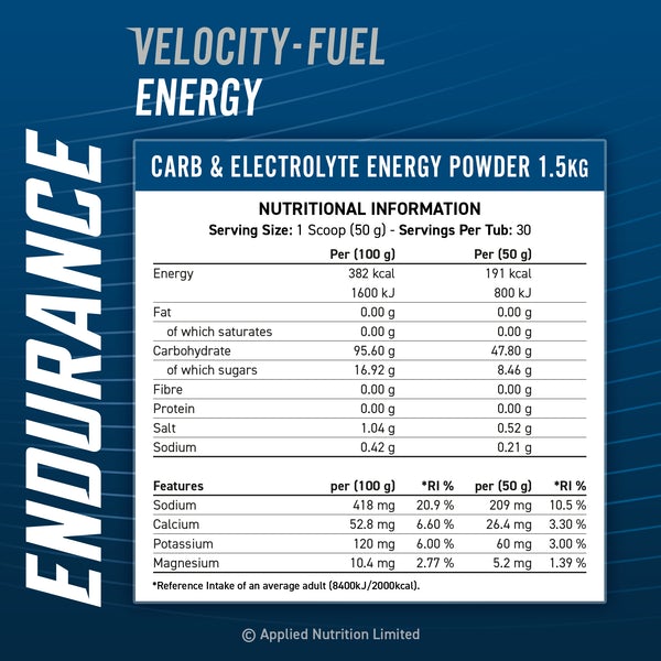 Optimise your workout routine with Applied Nutrition’s Endurance Carb & Electrolyte Energy! This premium carb & electrolyte energy powder helps you perform at your best with an incredible 48 grams of carbohydrates and 300 mg of electrolytes per serving.