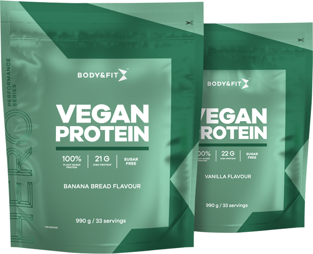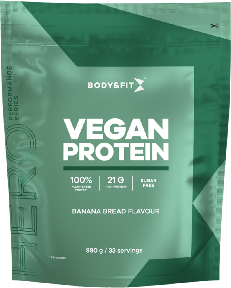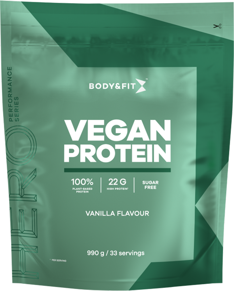 Body & Fit Vegan Protein is a high quality plant-based protein powder designed to support an active vegan lifestyle. This premium formula contains (over) 20 grams of protein per serving to stimulate muscle growth and support muscle recovery after intense exercise.