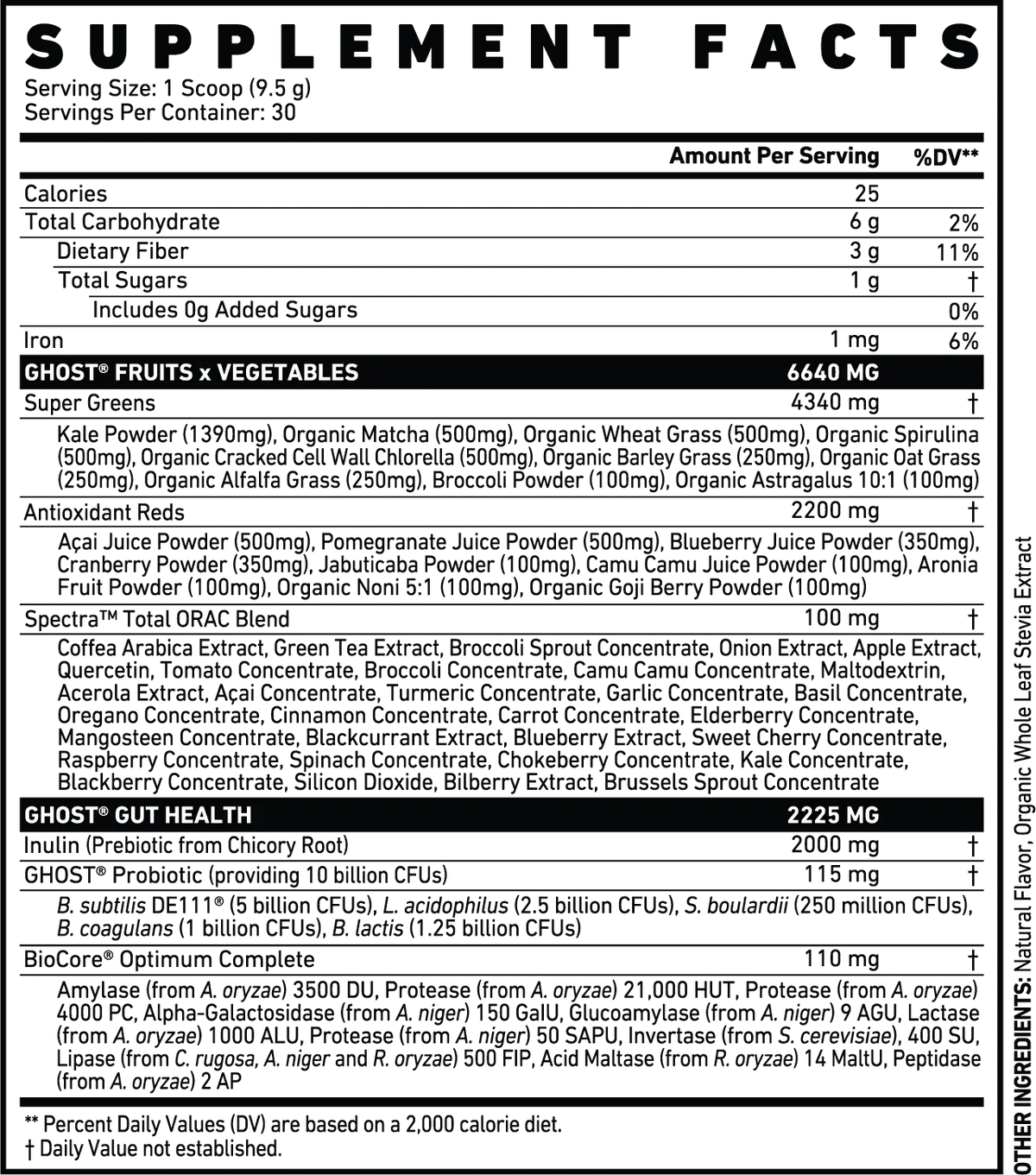 GHOST® GREENS is a premium superfood formula combining 19 Greens and Reds, alongside added digestive support to complement your daily routine. Each serving delivers a full 100mg dose of Spectra™, a blend of plant-based extracts and concentrates, along with prebiotics, 10 billion CFUs of probiotics and digestive enzymes. With ingredients like kale, spirulina, wheatgrass and açai, this all-in-one greens powder is designed to support your wellness routine.