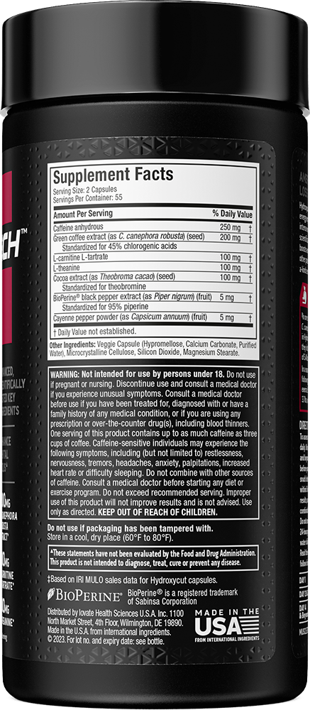 - Contains 200 mg caffeine anhydrous, a popular ingredient in high-performance formulas