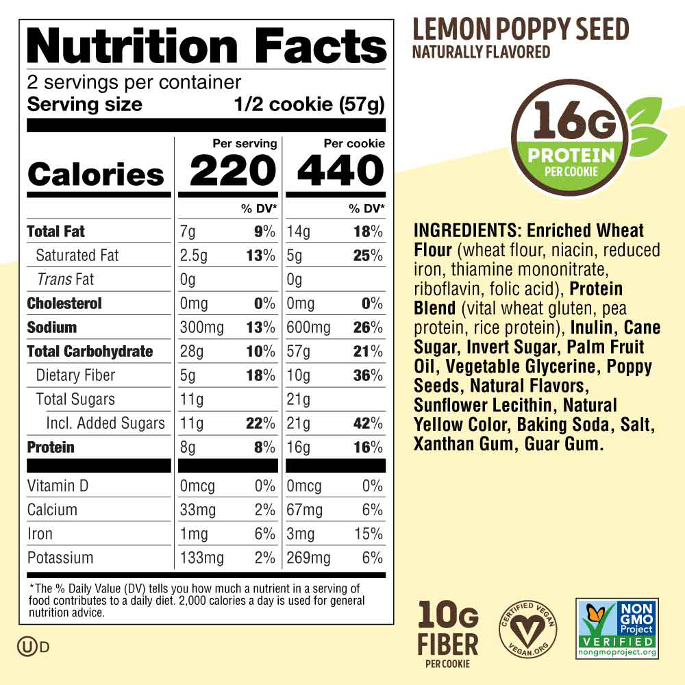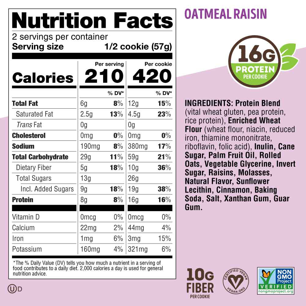 - 16 g plant-based protein per cookie