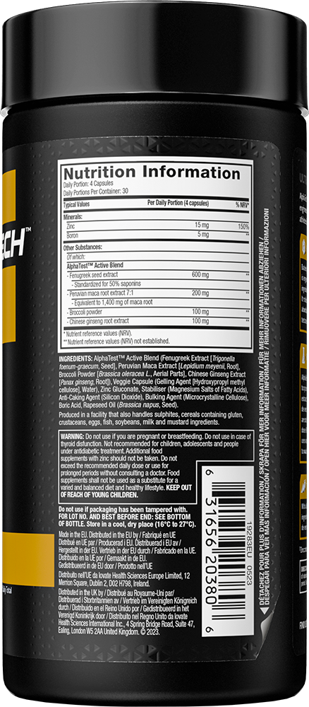 MuscleTech Alphatest is a super concentrated testosterone stimulant. Each serving is packed with the most popular test-boosting ingredients, including Fenugreek Seed Extract, Peruvian Maca Root Extract and a potent dose of Zinc.