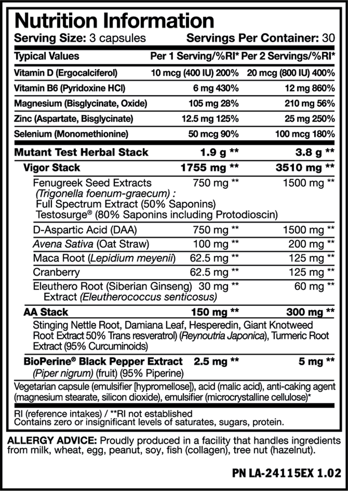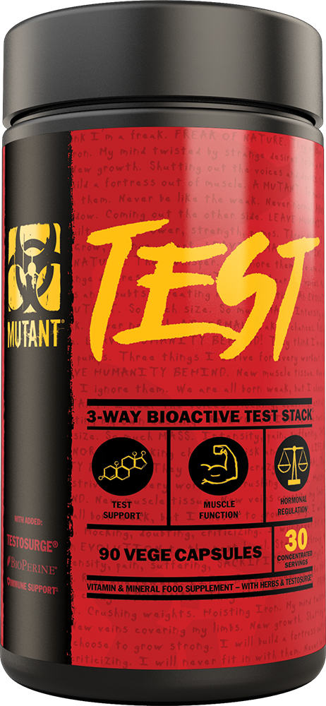 Mutant Test is a powerful testosterone booster with premium and supportive ingredients for maximum effect. Each serving contains the powerful Testosurge®, Fenugreek, D-Aspartic Acid, Marca Root and more!