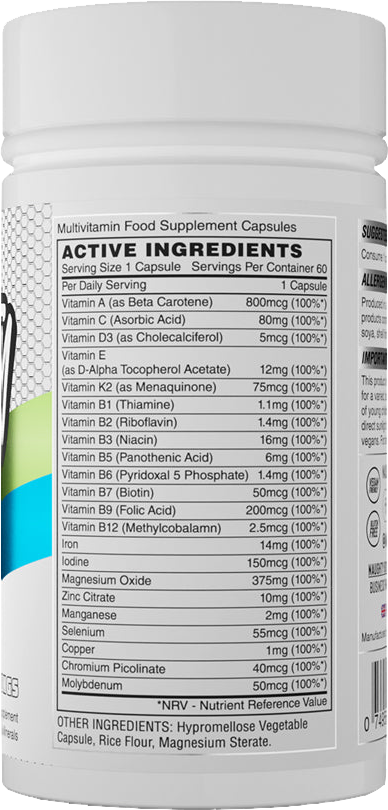 With up to 22 vitamins and minerals in just one capsule, Naughty Boy Multi provides complete vitamin and mineral support for everyday use.