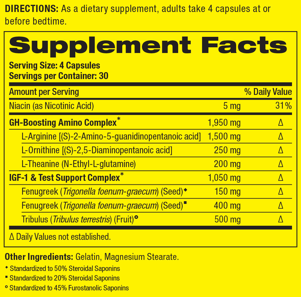 - Features plant-based extracts: fenugreek and tribulus terrestris