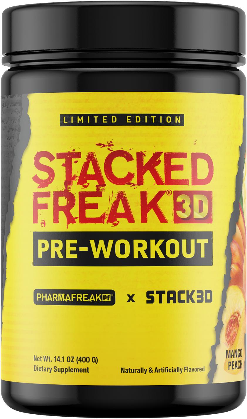 Get stacked and crush your workouts with the new Stacked Freak 3D Pre-Workout from Pharma Freak! Each serving is packed with 6 grams of L-Citrulline, 5 grams of Betaine Anhydrous, 2 grams of L-Tyrosine, 375 mg of Caffeine and much more for a freaking good boost!