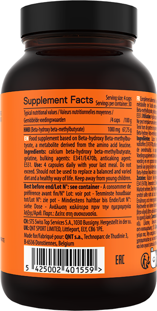 QNT HMB is a straightforward and effective supplement featuring beta-hydroxy beta-methylbutyrate (HMB), a well-known metabolite of the amino acid leucine. Often used by athletes and fitness enthusiasts, HMB is a popular addition to training routines focused on performance and recovery. With 1000 mg per serving and a convenient capsule format, QNT HMB fits easily into your daily supplement plan.
