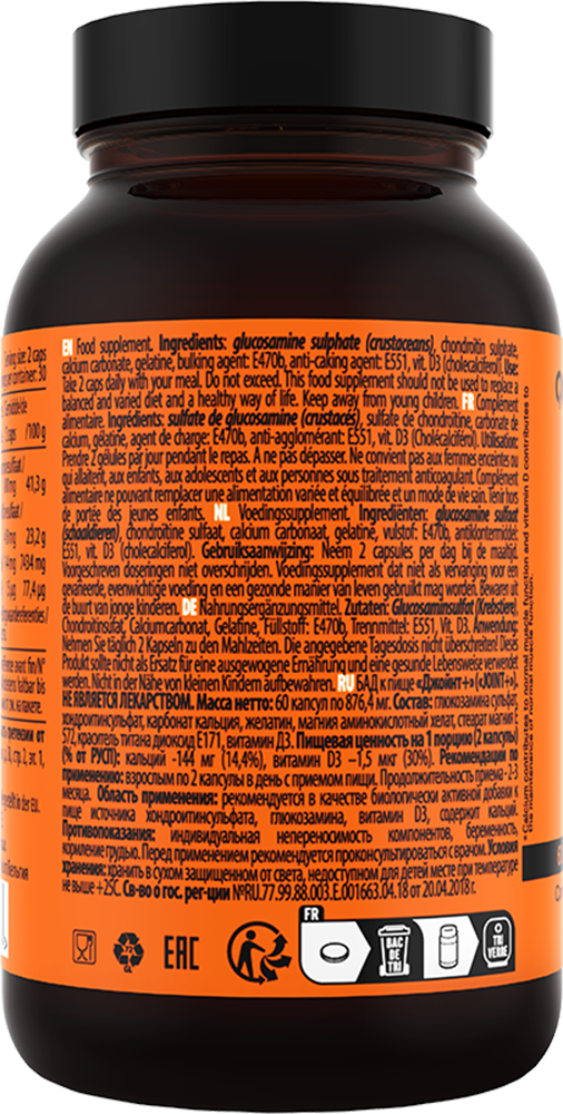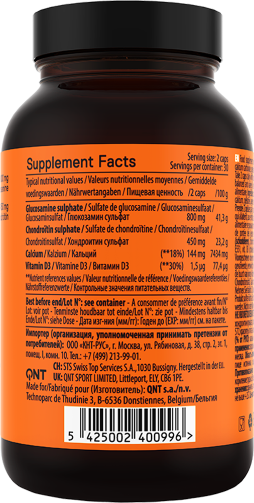 JOINT + by QNT is a very useful supplement for people who need to maintain the flexibility of their joints. Time and physical activity are responsible for joint degradation, especially in active people. Sportsmen are even more exposed to articular stress and sometimes need to use supplements to heal cartilage and promote joint flexibility. JOINT + combines two ingredients known for their beneficial properties: glucosamine and chondroitin. The addition of vitamin D allows this formula to be even more effective, as this vitamin contributes to maintain a normal bone structure.