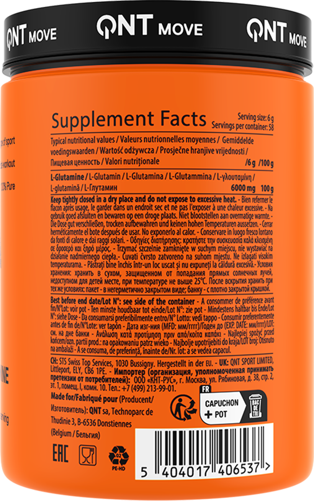 L-Glutamine is a non-essential amino acid. It is very abundant (it makes up almost 2/3 of the amino acids that make up muscle protein) and is widely used by muscles, but is produced in limited quantities by the human body. It is therefore important to ensure an adequate intake of food and, if necessary, food supplements. Athletes who train particularly hard should consider supplementing their diet with L-Glutamine 6000 for best results.