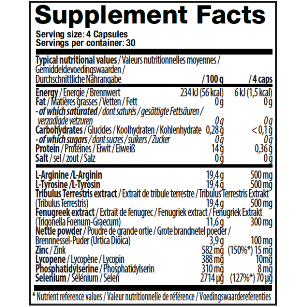 Testek contains all natural ingredients that work in synergy with hormones naturally present in the body to optimize muscle building, fat burning effects, testosterone levels and growth. This dietary supplement helps your sports performance and significantly stimulates your libido. Due to its complex and richly dosed formula, it is recommended not to exceed the prescribed doses.