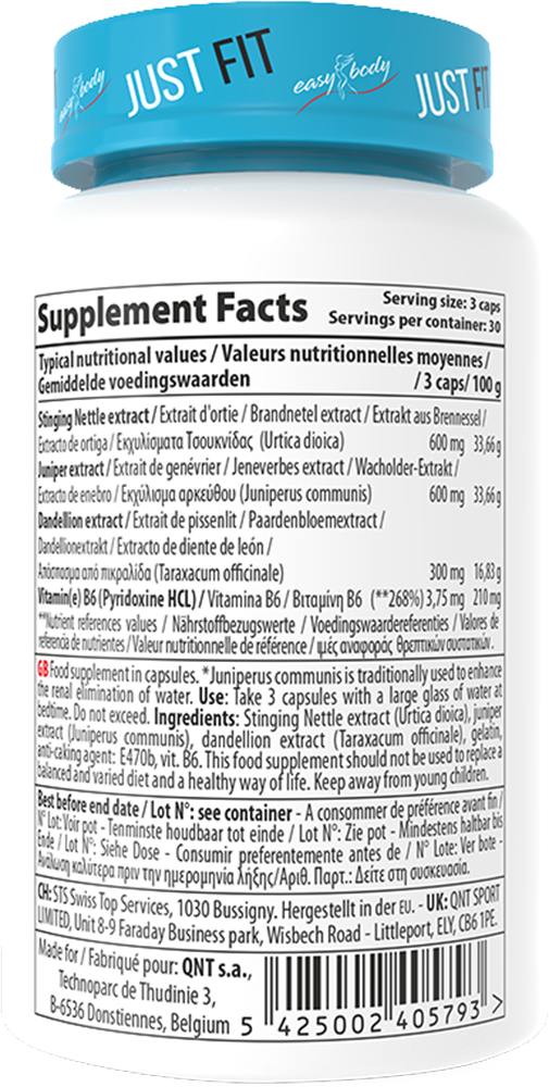 Waterless was formulated with only natural ingredients which help eliminate excess water from the body. 3 capsules of Waterless contain 375 mg of dandelion extract, a plant known for its powerful diuretic effect and about 15% (56 mg) of your daily need in magnesium, a very important mineral that contributes to electrolyte balance. It also contains many other plant extracts such as Parsley, Celery, Buchu, Juniper and Bladderwrack, plants that are all known for a long time as having powerful water shedding properties, meaning they help your body eliminate excess water by increasing urine production.