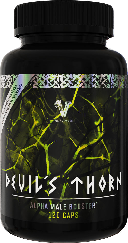 Meet Viking Power Devil’s Thorn Testo Booster, arguably the strongest Tribulus on the market. Each serving is packed with almost 3 grams of Tribulus Terrestris, of which 90% saponins. It’s fortified with a potent dose of Black Pepper Extract, vitamin B6 and Zinc to help maintain normal blood testosterone levels.