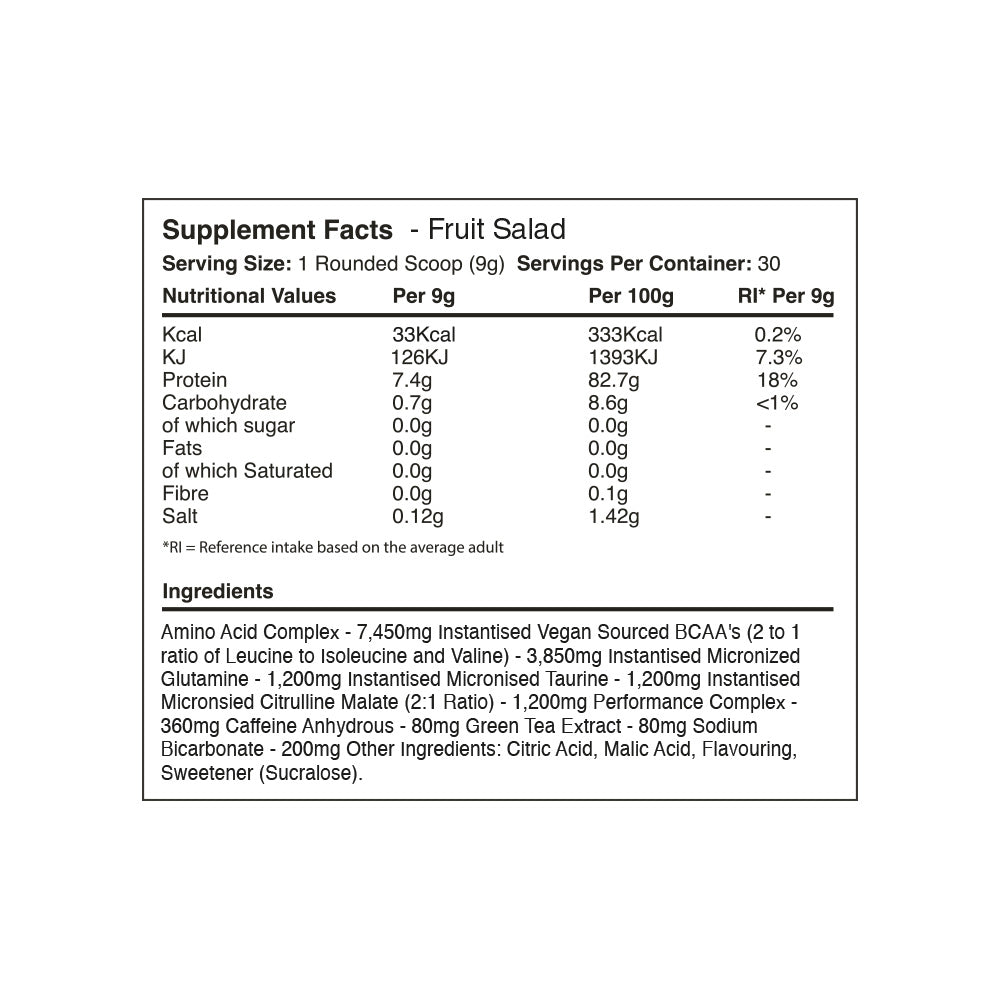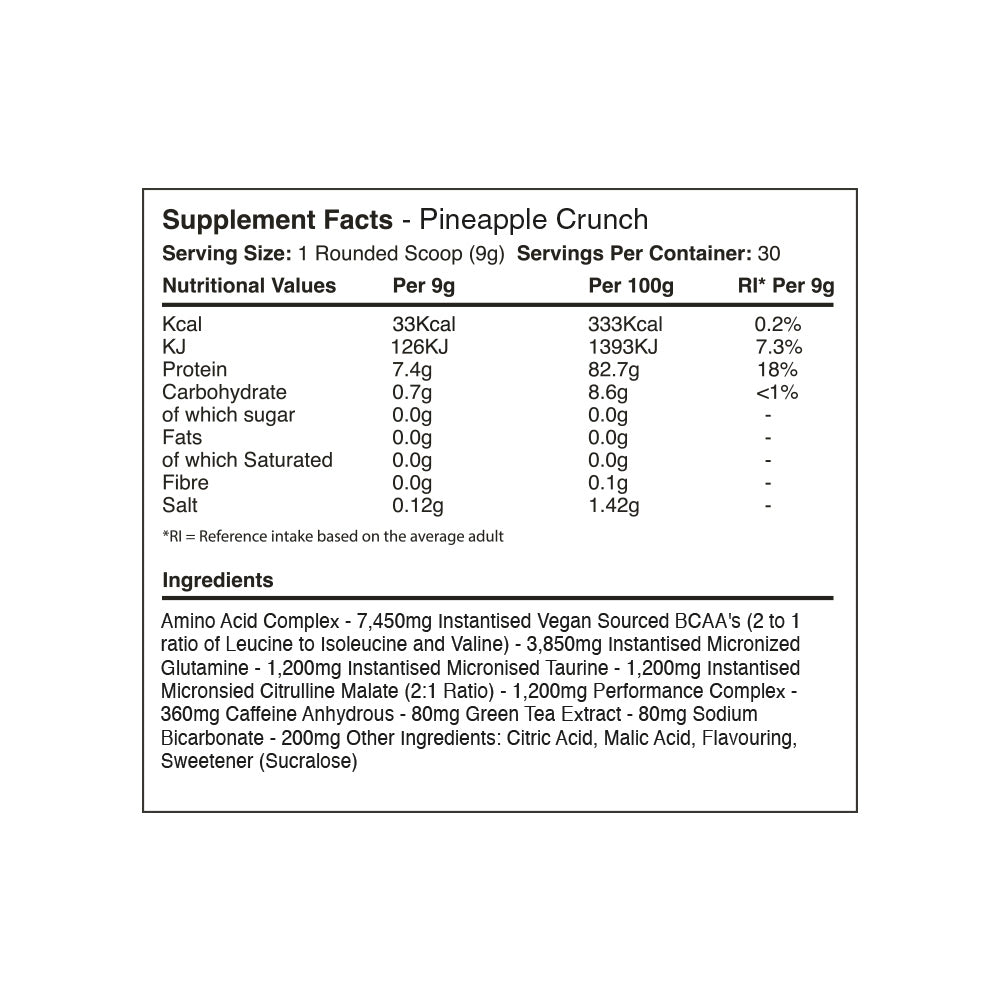 Combined with Caffeine Anhydrous, Green Tea Extract and Sodium Bicarbonate, it is the best all-day energy and BCAA product on the market. Time to smash each and every workout!