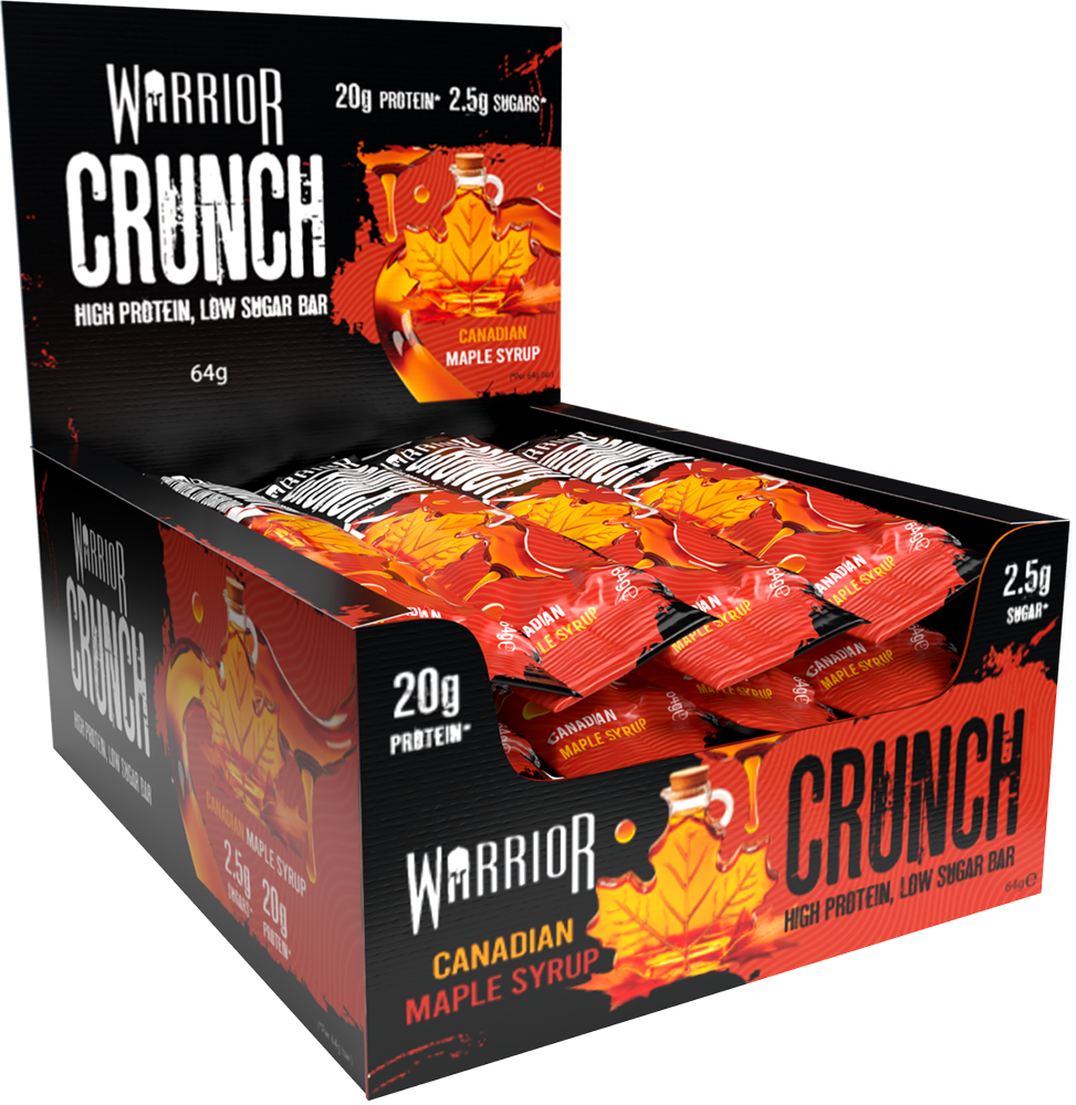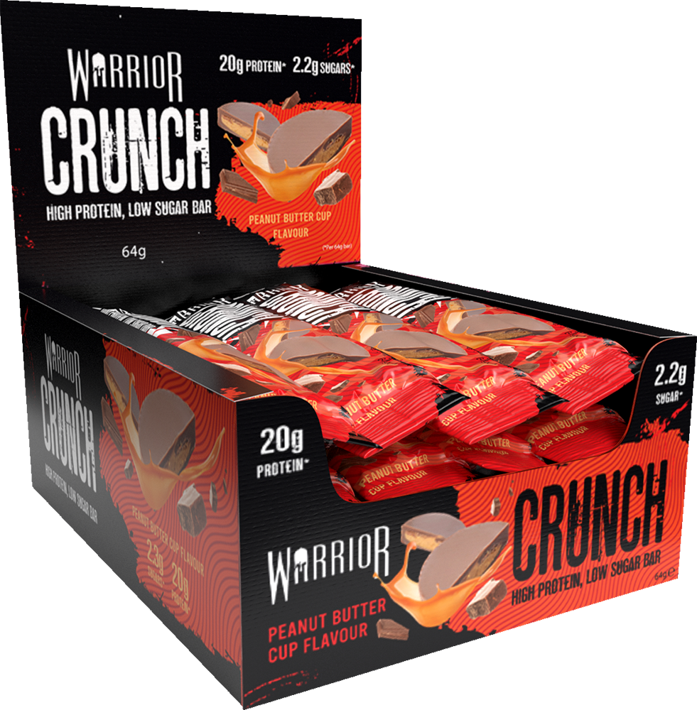 Warrior has thought of everything with their Crunch Protein Bar. Each bar packs a powerful punch with 20 grams of high protein, just 2,3 grams of sugar and 24 grams of carbohydrates.