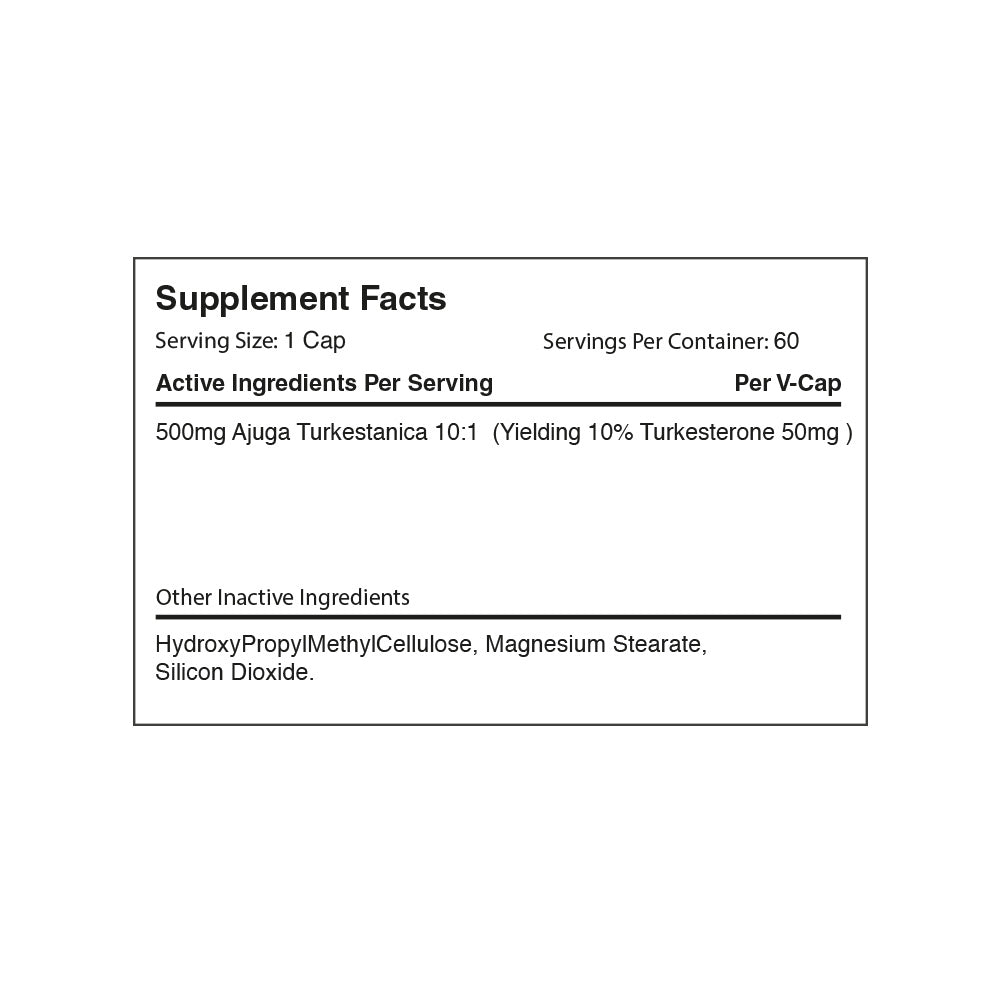 - 500 mg 10:1 Ajuga Turkestanica yielding 50 mg Turkesterone