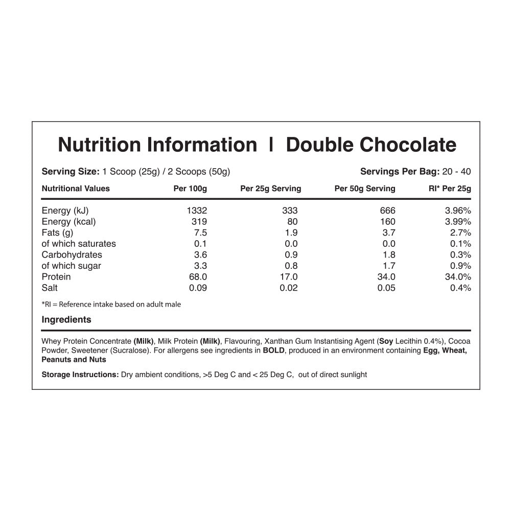 Warrior Whey Protein delivers an astounding 36 g of high quality protein per serving (50 g) and is low in sugar (Double Chocolate). And with the choice of 6 flavours, there is something for each person. On top of everything, Warrior Whey is suitable for a vegetarian diet.