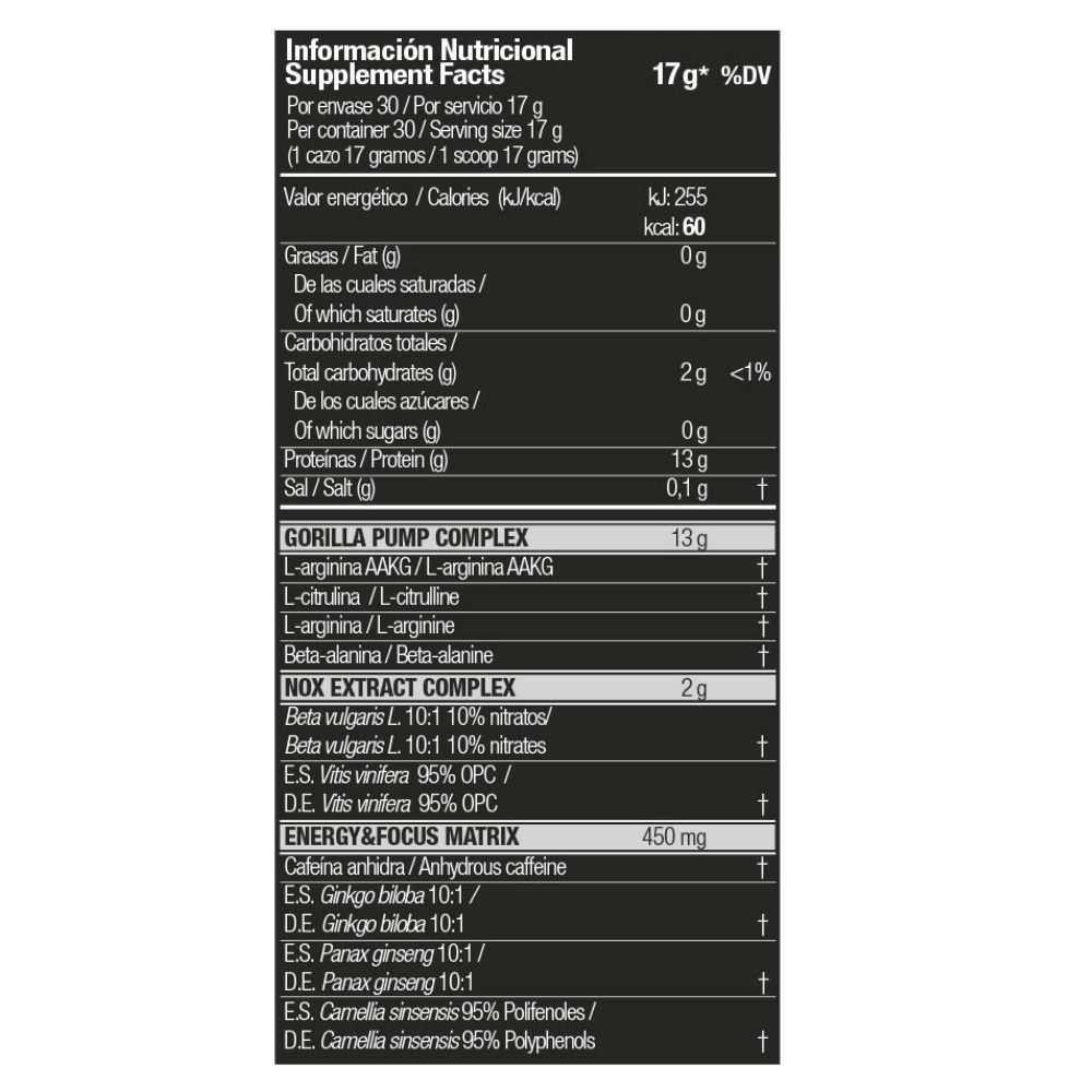 The NOX Extract Complex consists of Beta Vulgaris L. Extract and Vitis Vinifera Extract. Together with the Energy and Focus Matrix consisting of potent ingredients including caffeine, this pre-workout is sure to awaken your inner Lunático.